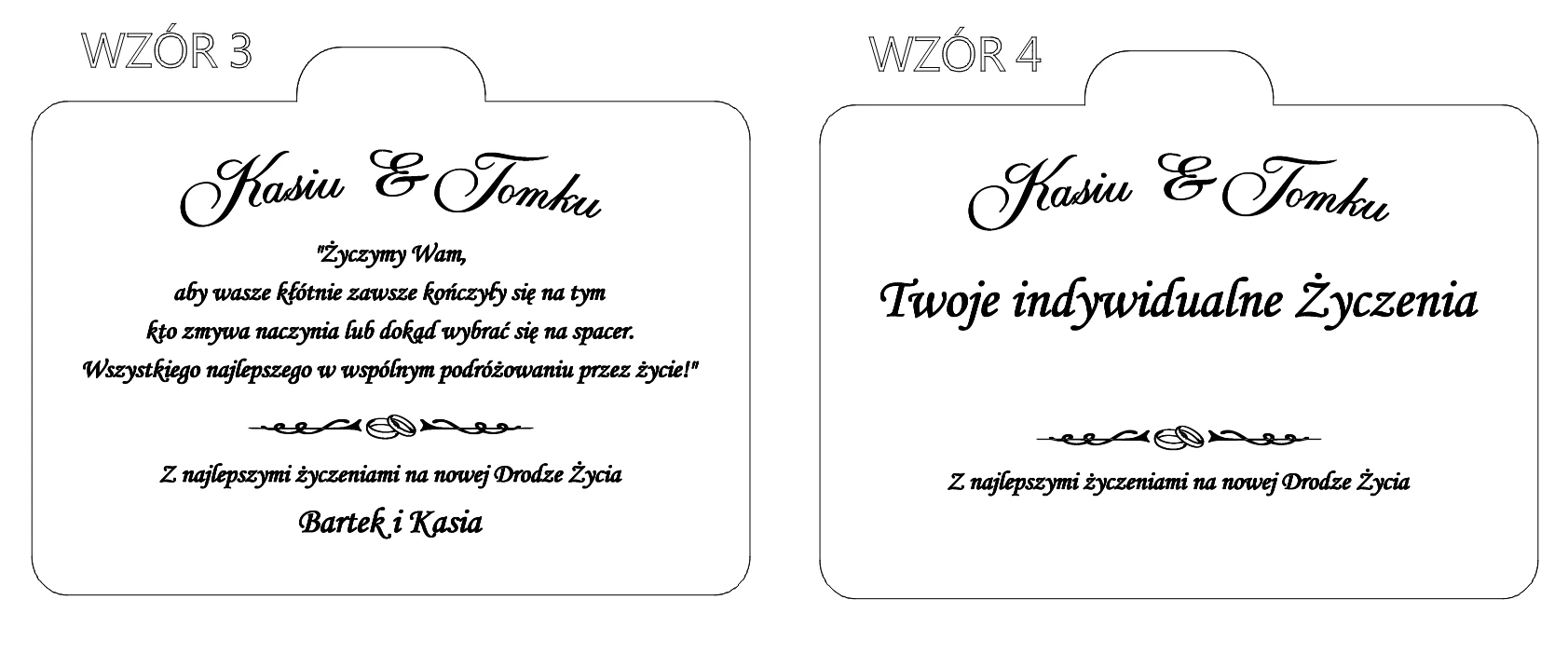 - Wybranego wzoru życzeń (1, 2, 3 lub 4) wzory w galerii zdjęć