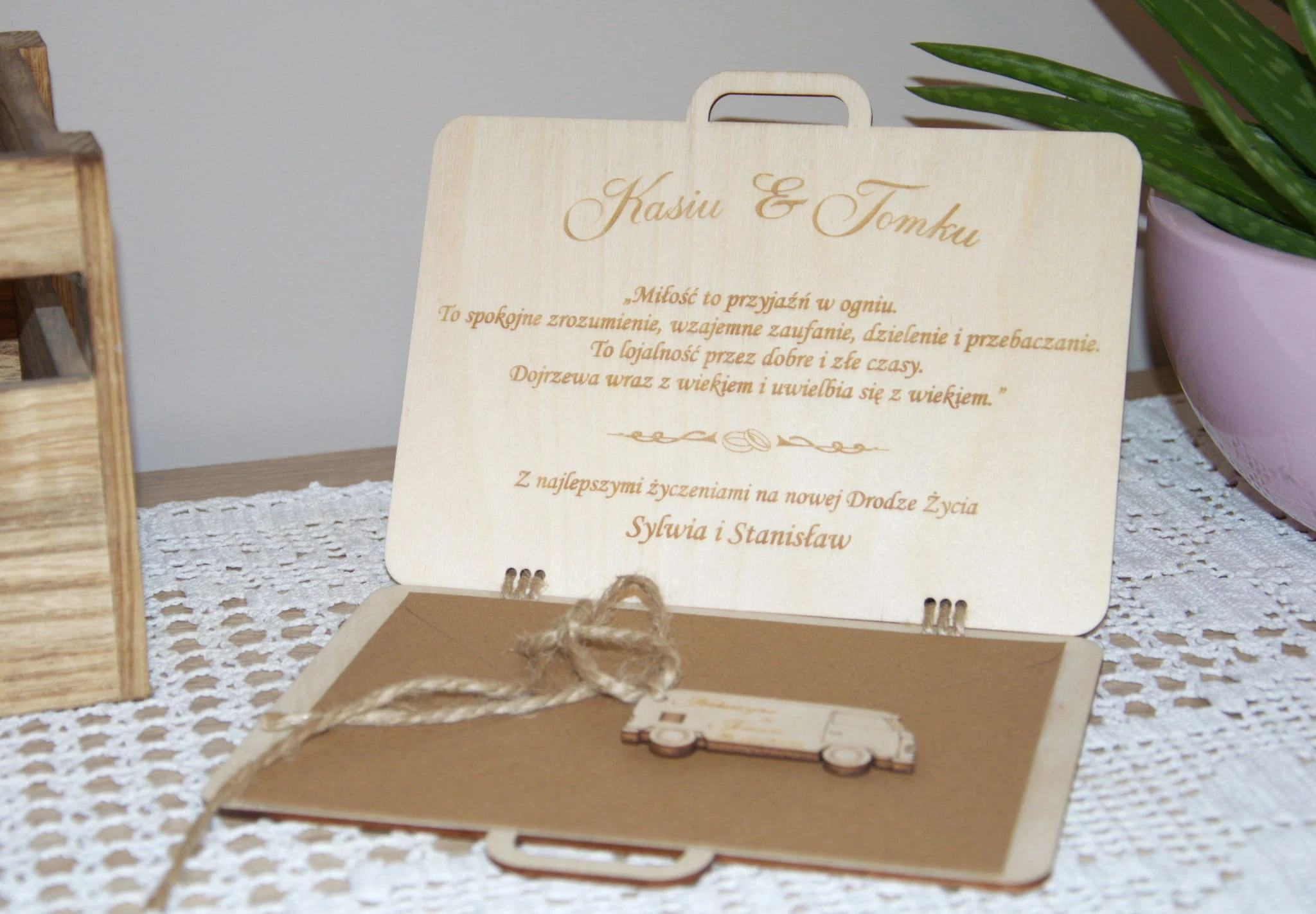Drewniana kartka-walizka ✨ personalizowana pamiątka ślubna i elegancki prezent na wesele ✨ koperta ślubna na pieniądze, vouchery lub bony – trwała i wyjątkowa.