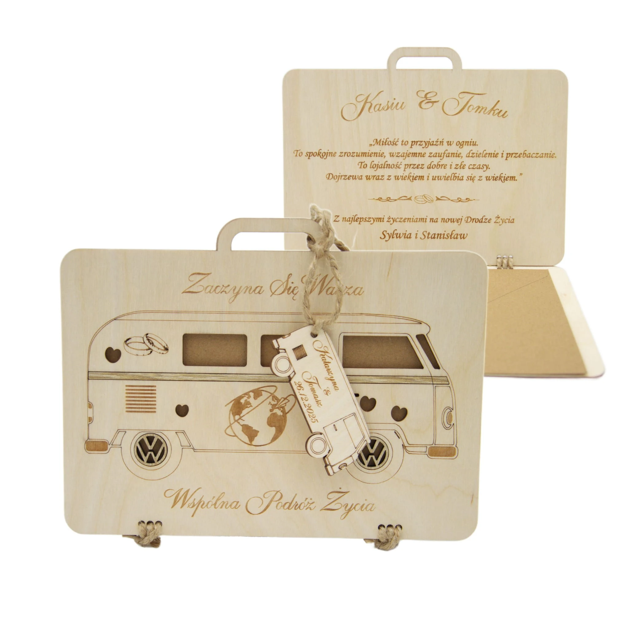 Kartka Walizka Na Ślub Wesele GRAWER prezent pamiątka ślubu bus