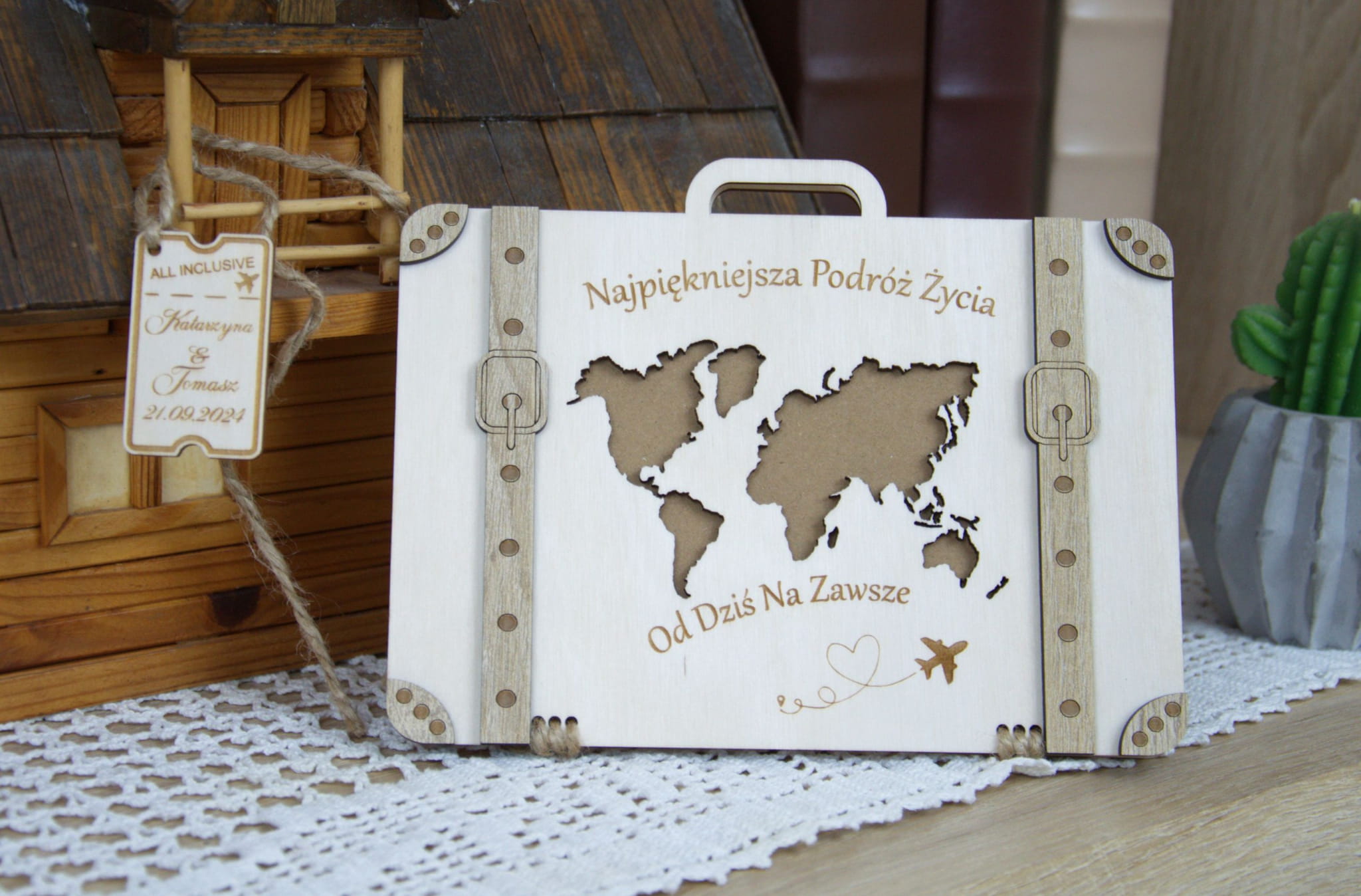➡️ Szukasz wyjątkowego sposobu na wręczenie pieniędzy Młodej Parze? ➡️ Nasza drewniana kartka na pieniądze w kształcie walizki to elegancka i trwała pamiątka ślubna, która zachwyci nowożeńców i gości.