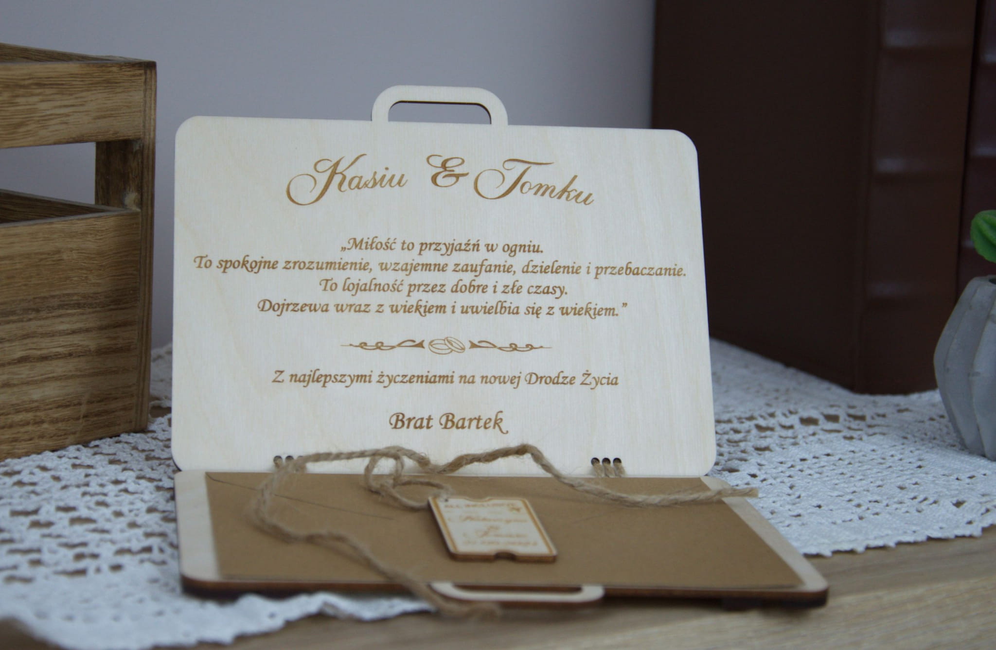 Drewniana kartka-walizka ✨ personalizowana pamiątka ślubna i elegancki prezent na wesele ✨ koperta ślubna na pieniądze, vouchery lub bony – trwała i wyjątkowa.