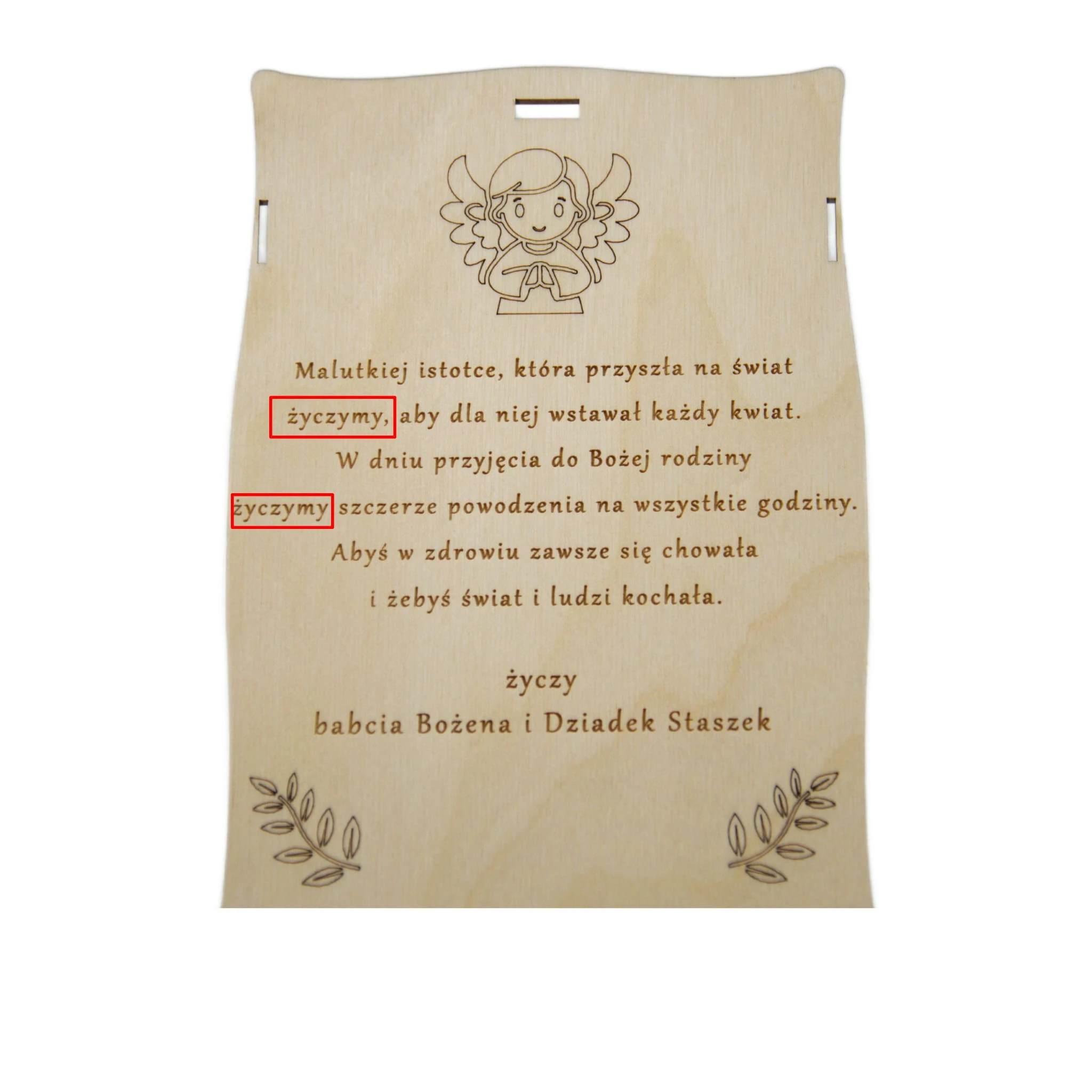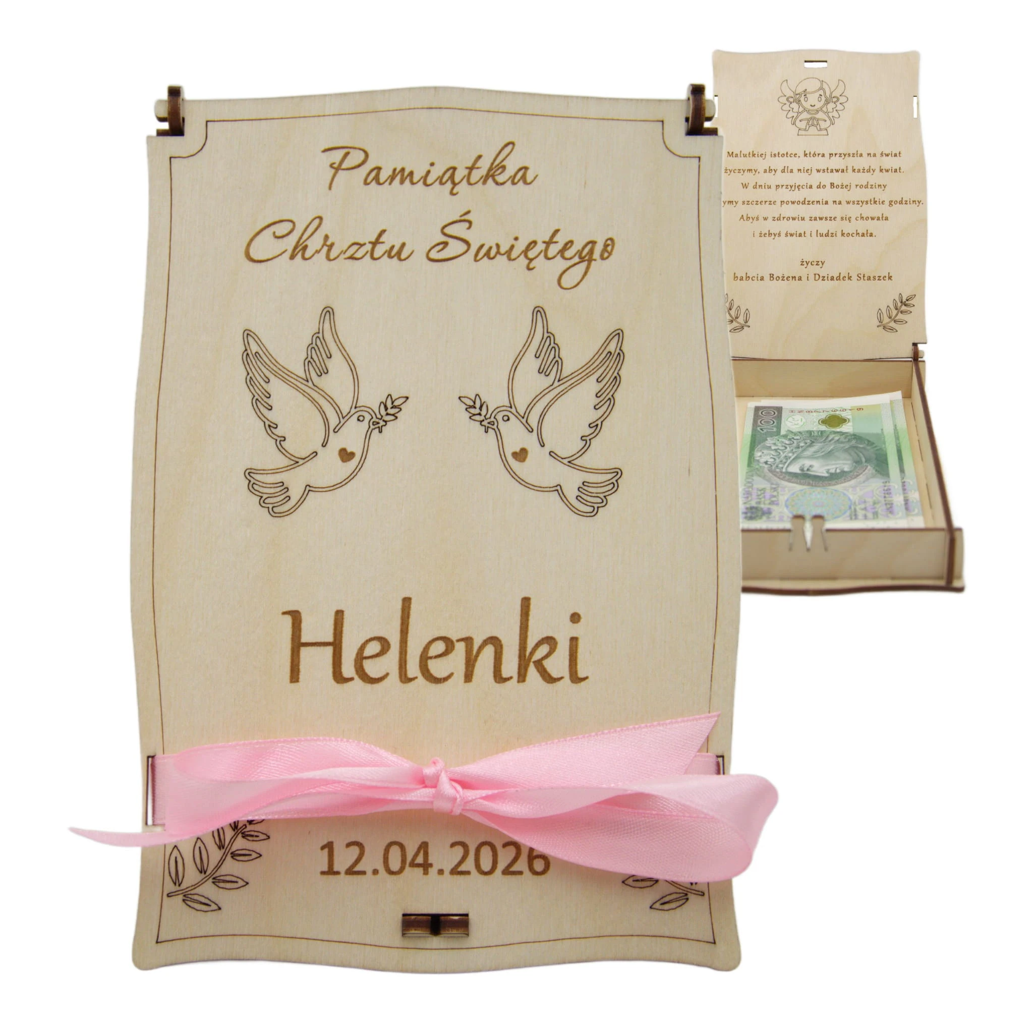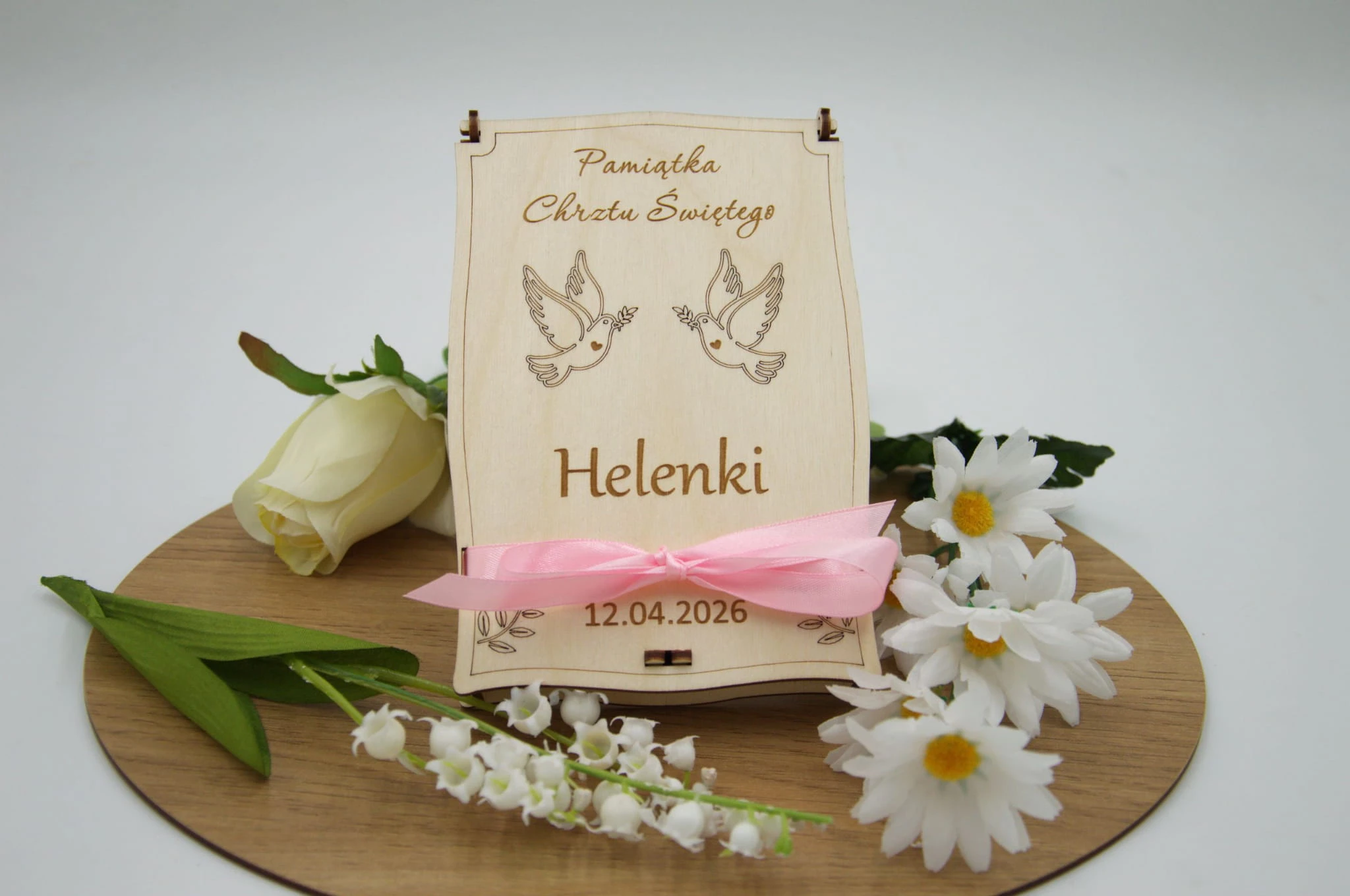 Kartka na Chrzest Święty Pamiątka Chrztu Pudełko Grawer Dziewczynka