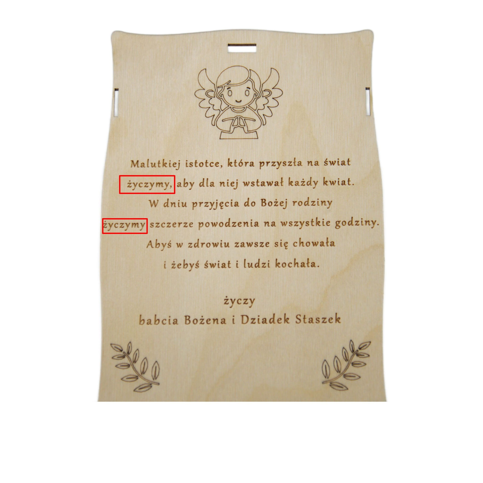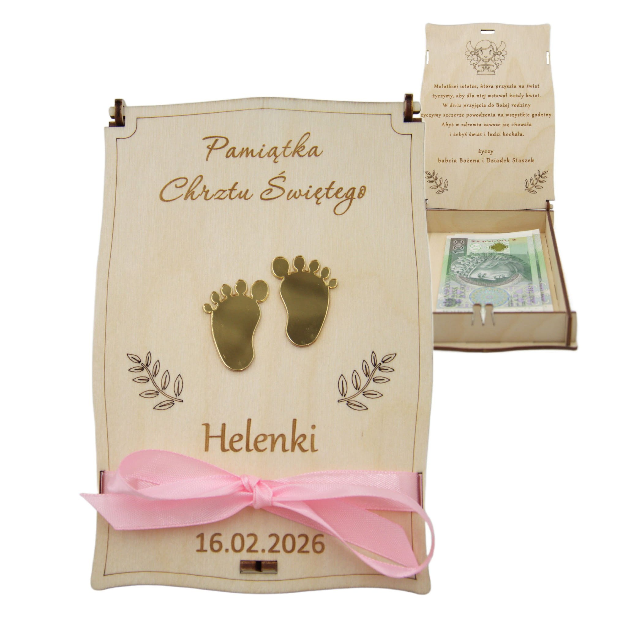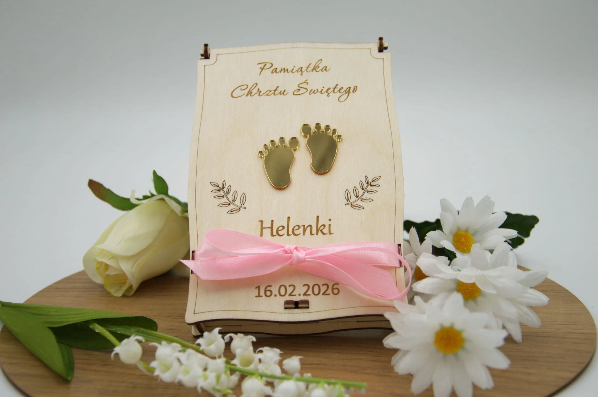 Kartka na Chrzest Święty Pamiątka Chrztu Pudełko Grawer Dziewczynka