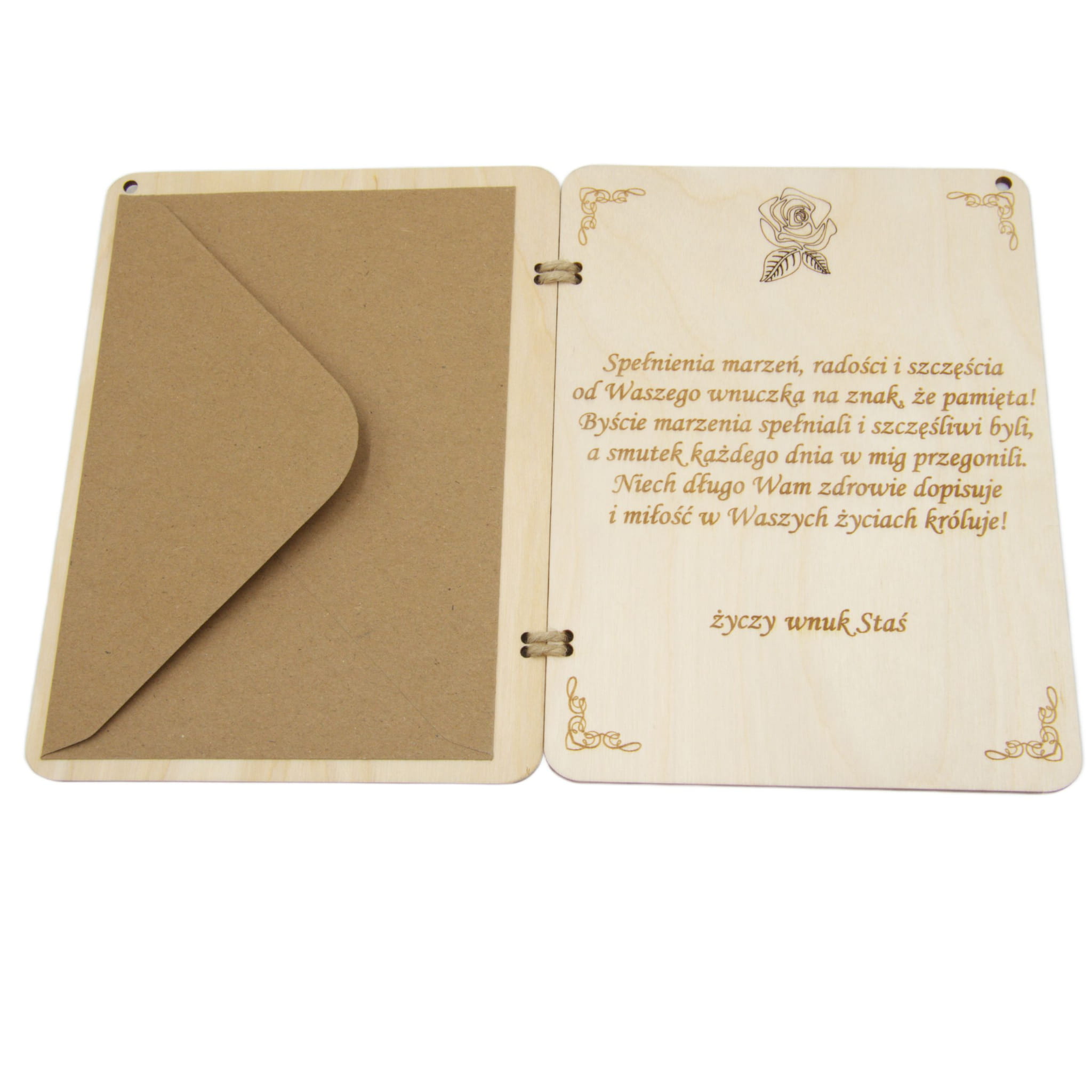 Kupujecie kartkę z grawerem,kopertą i przywieszką.