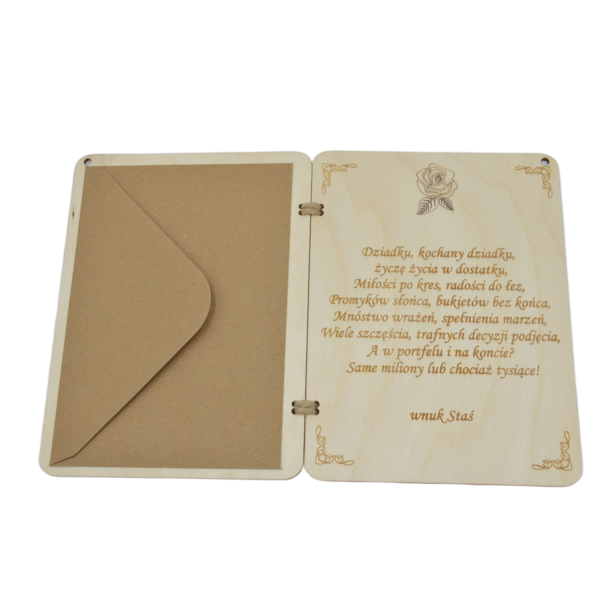 Kupujecie kartkę z grawerem,kopertą i przywieszką.