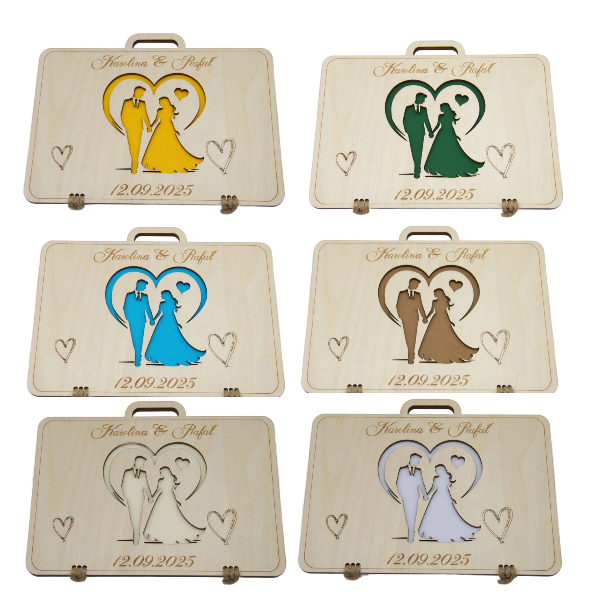 ➡️ Szukasz wyjątkowego sposobu na wręczenie pieniędzy Młodej Parze? ➡️ Nasza drewniana kartka na pieniądze w kształcie walizki to elegancka i trwała pamiątka ślubna, która zachwyci nowożeńców i gości.
