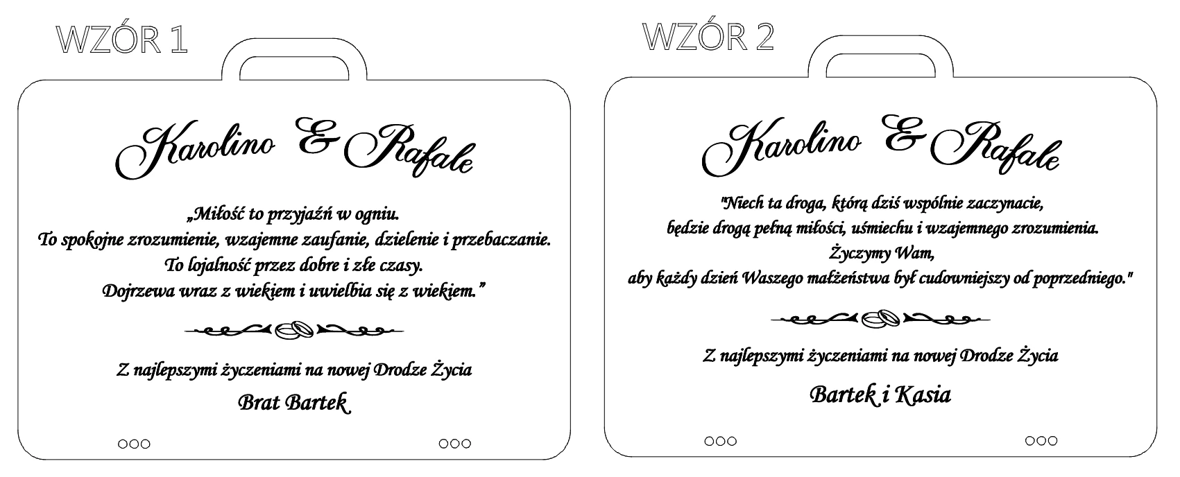 Kupujecie walizeczkę z grawerem, przywieszką oraz kopertą w zestawie.