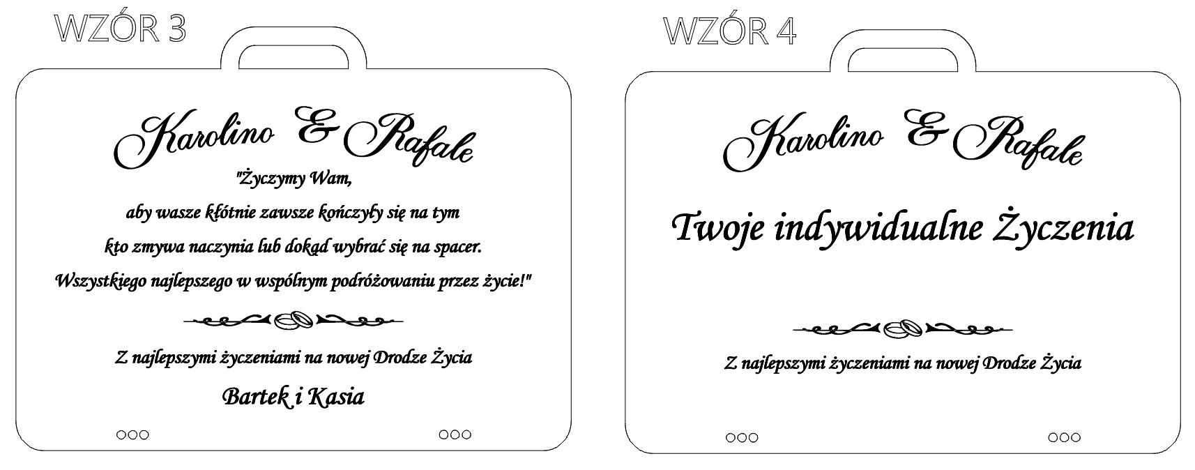 - Wybranego wzoru życzeń (1, 2, 3 lub 4) wzory w galerii zdjęć
