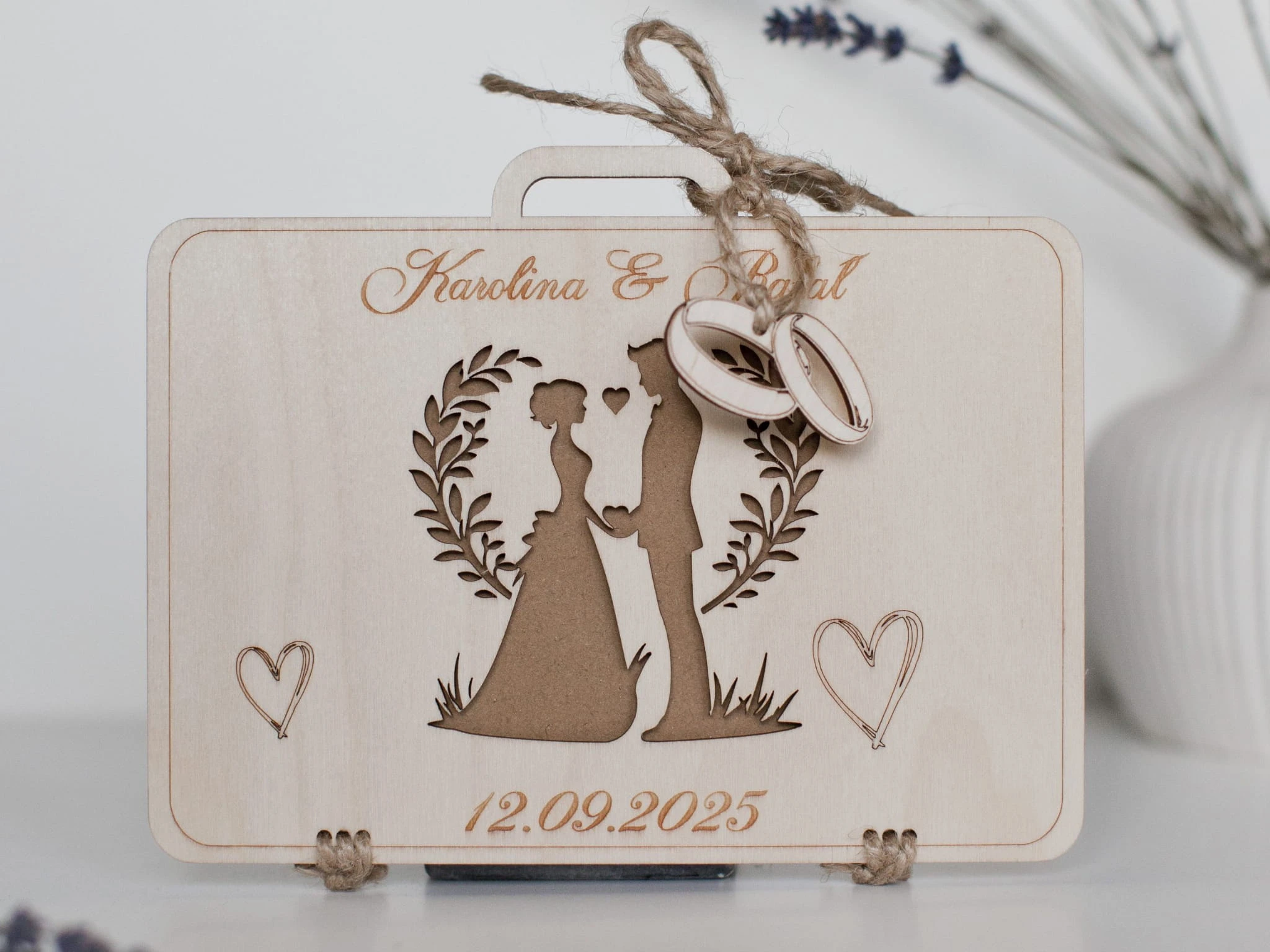 ➡️ Szukasz wyjątkowego sposobu na wręczenie pieniędzy Młodej Parze? ➡️ Nasza drewniana kartka na pieniądze w kształcie walizki to elegancka i trwała pamiątka ślubna, która zachwyci nowożeńców i gości.