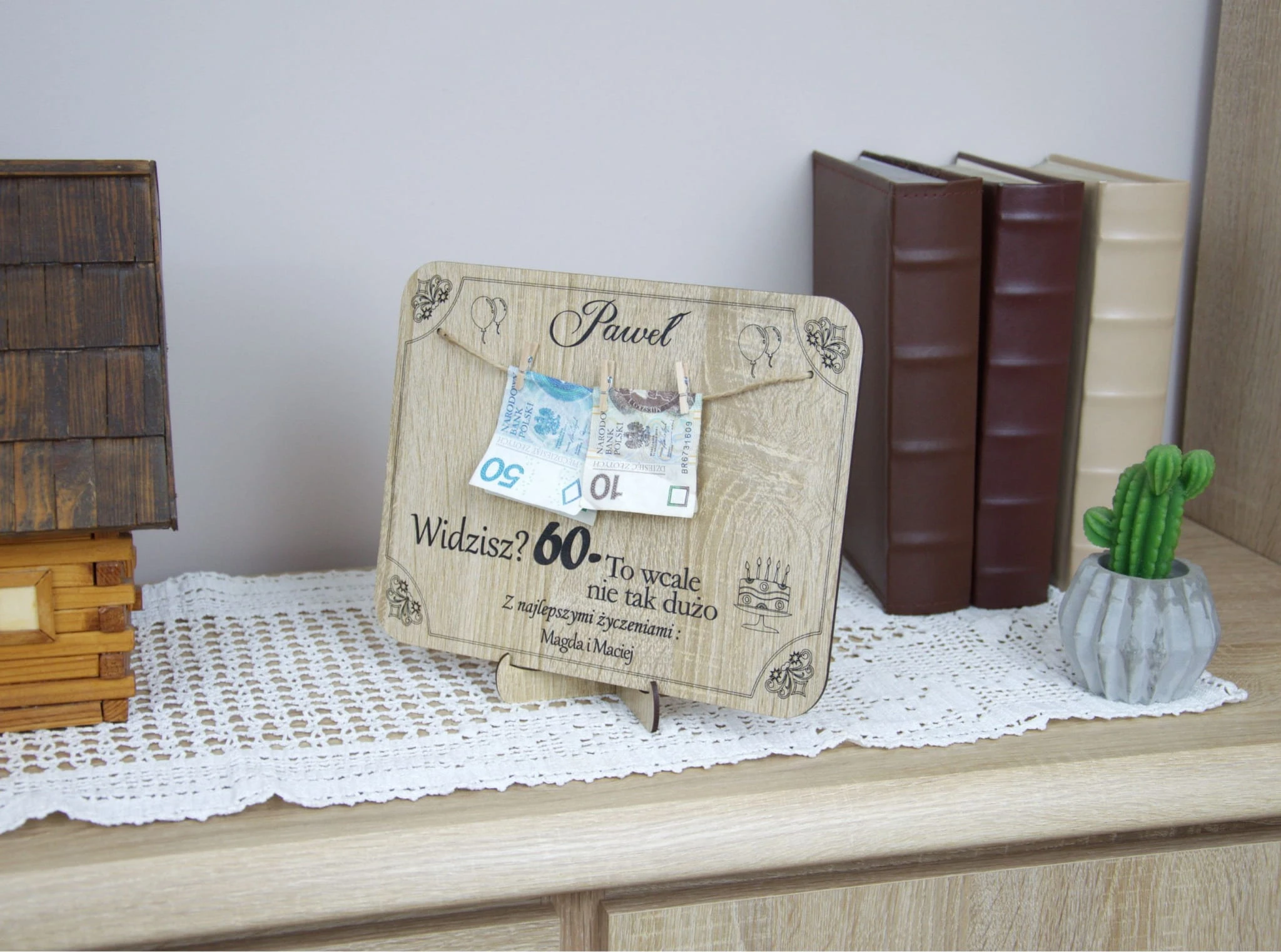 Kupujecie Obrazek z grawerem, Klamerkami oraz Statywem, pieniądze nie stanowią zestawu.