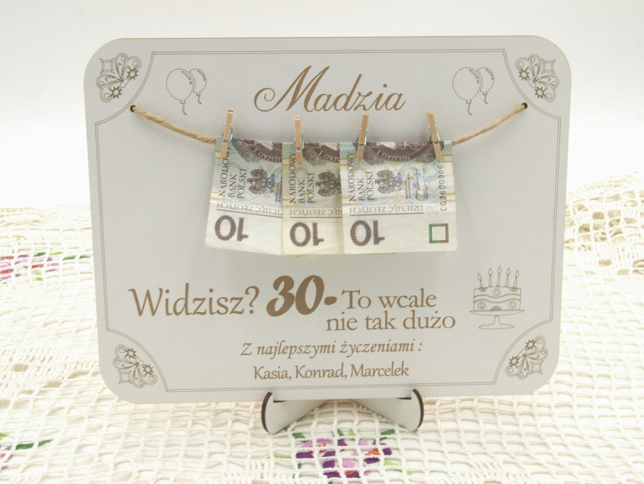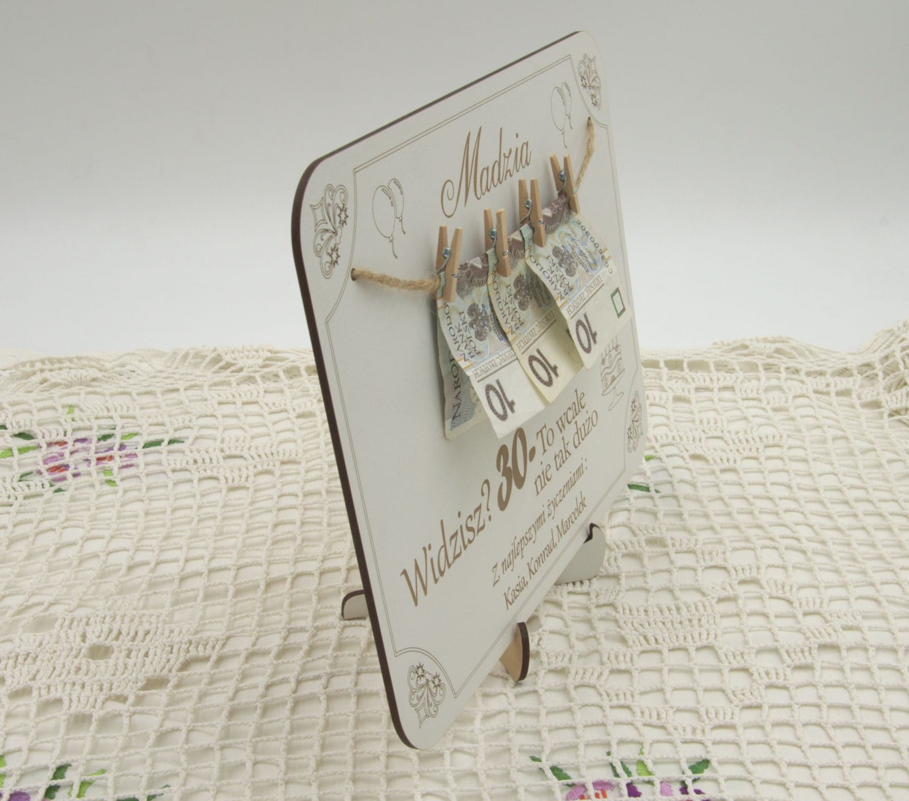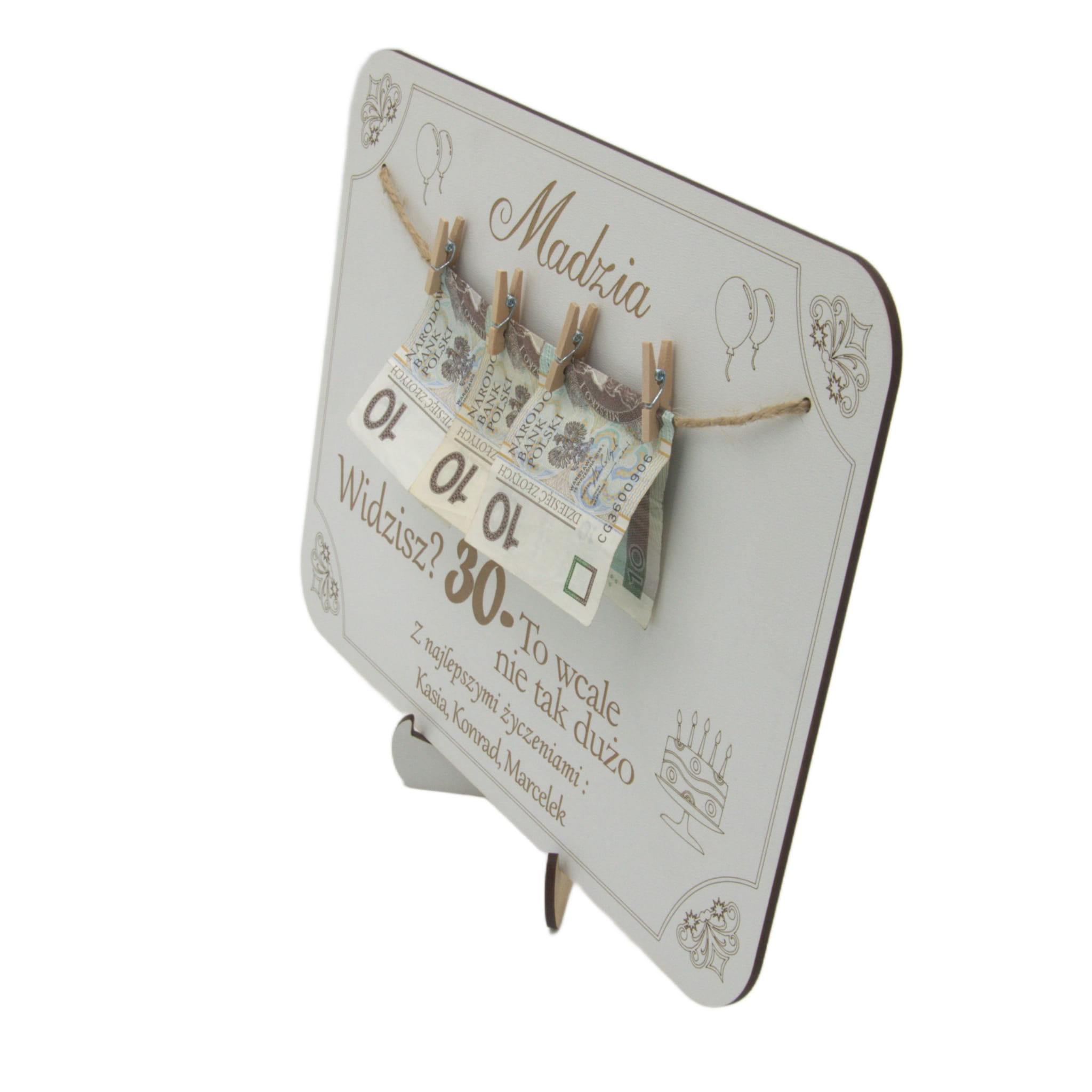 Kupujecie Obrazek z grawerem, Klamerkami oraz Statywem, pieniądze nie stanowią zestawu.