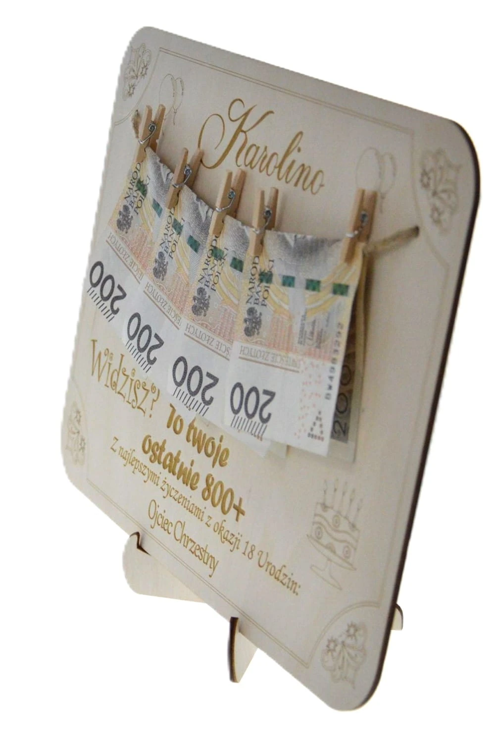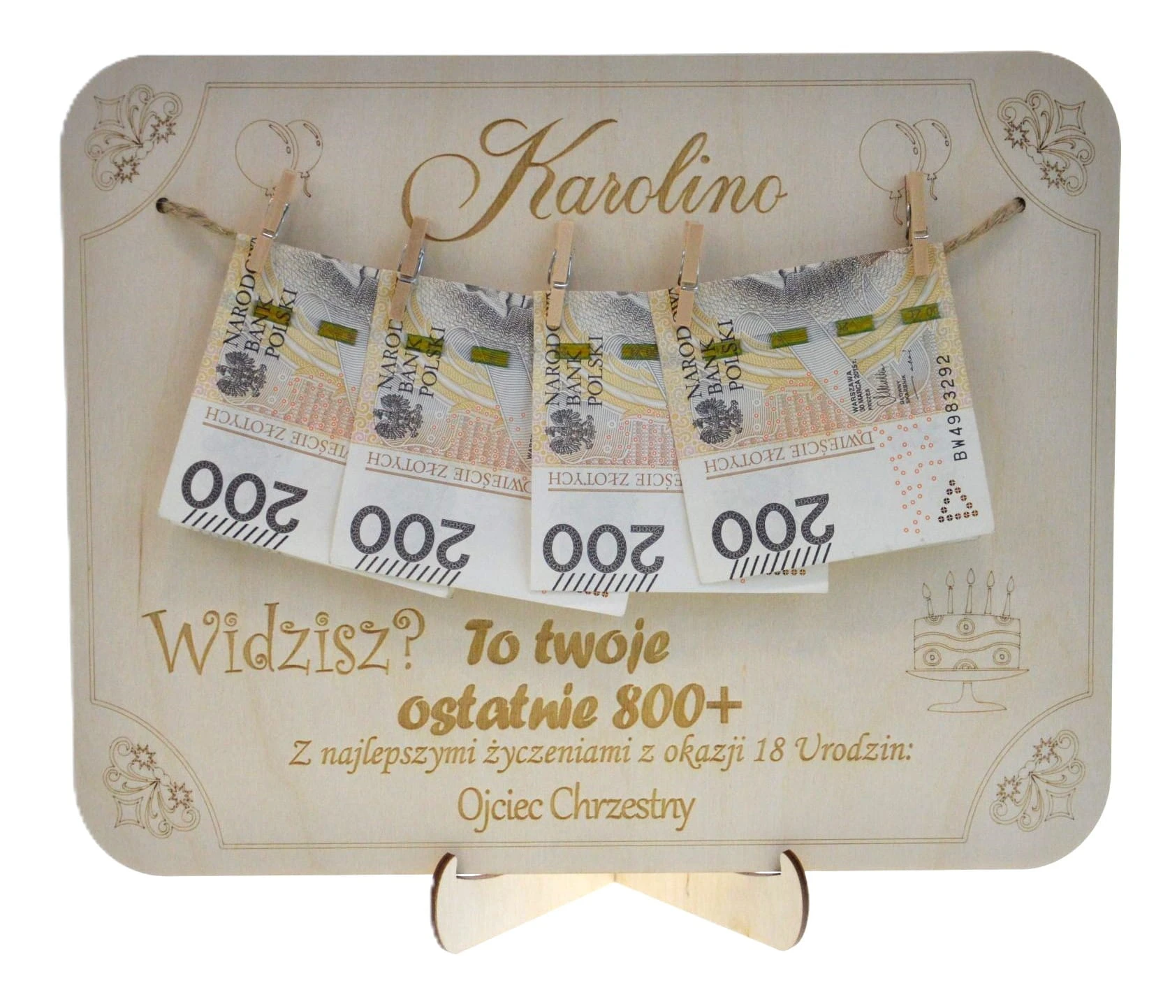✨Drewniana Ramka Prezent 18 Urodziny „Widzisz, to Twoje ostatnie 800+” – Personalizowany Upominek z Grawerem✨