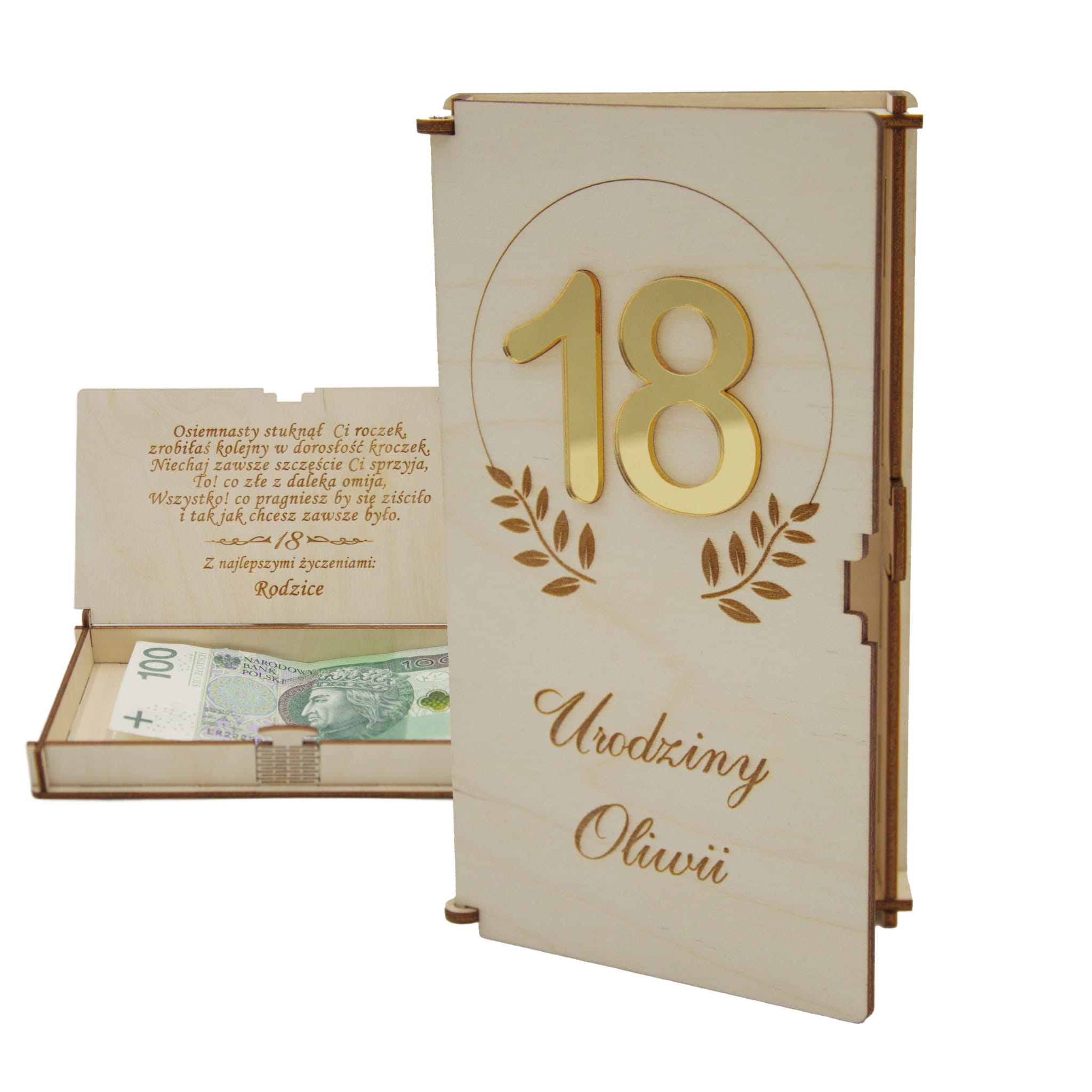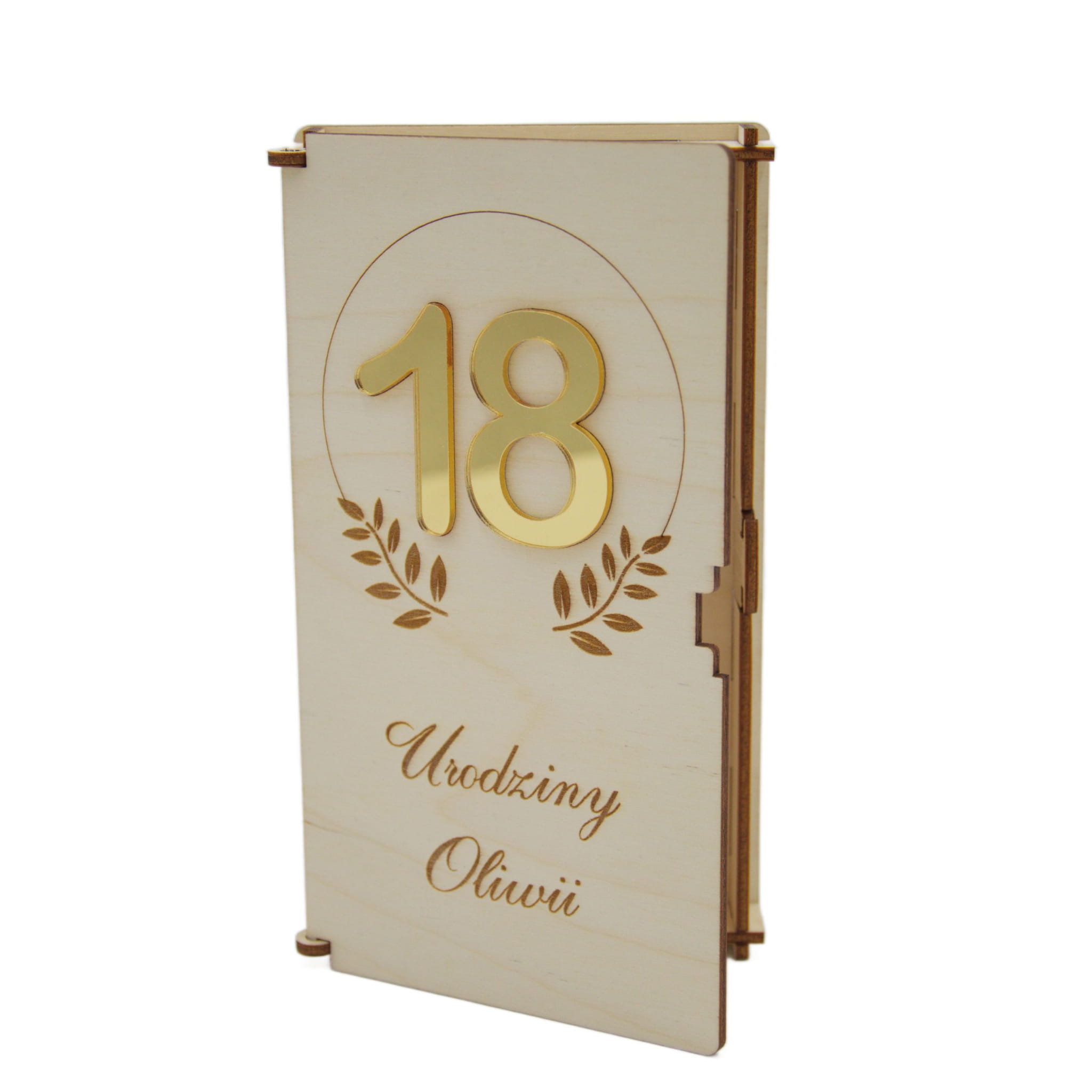 ✔️ Personalizacja – indywidualny grawer: imię, data uroczystości, dedykacja i wybrany wzór życzeń