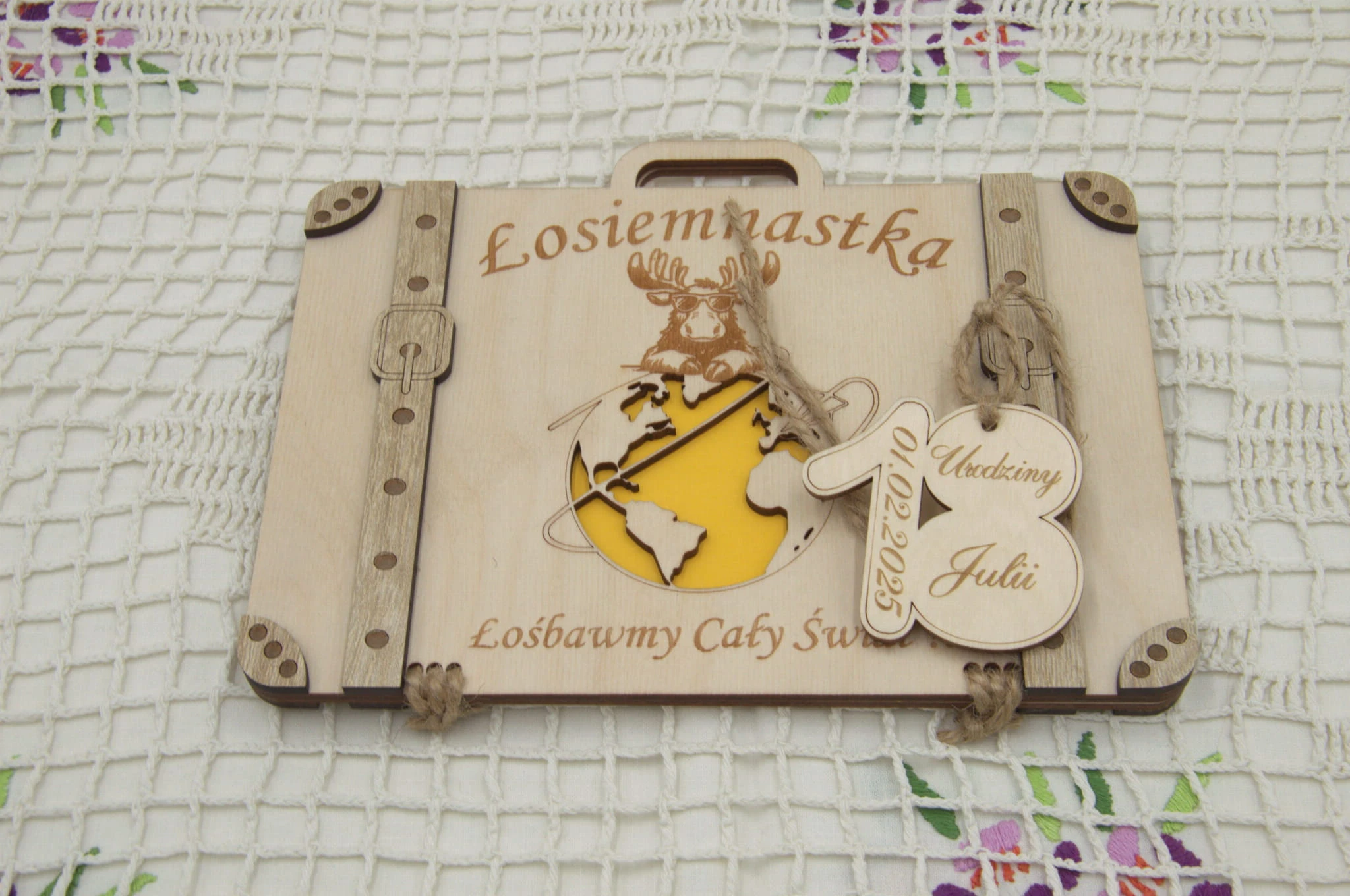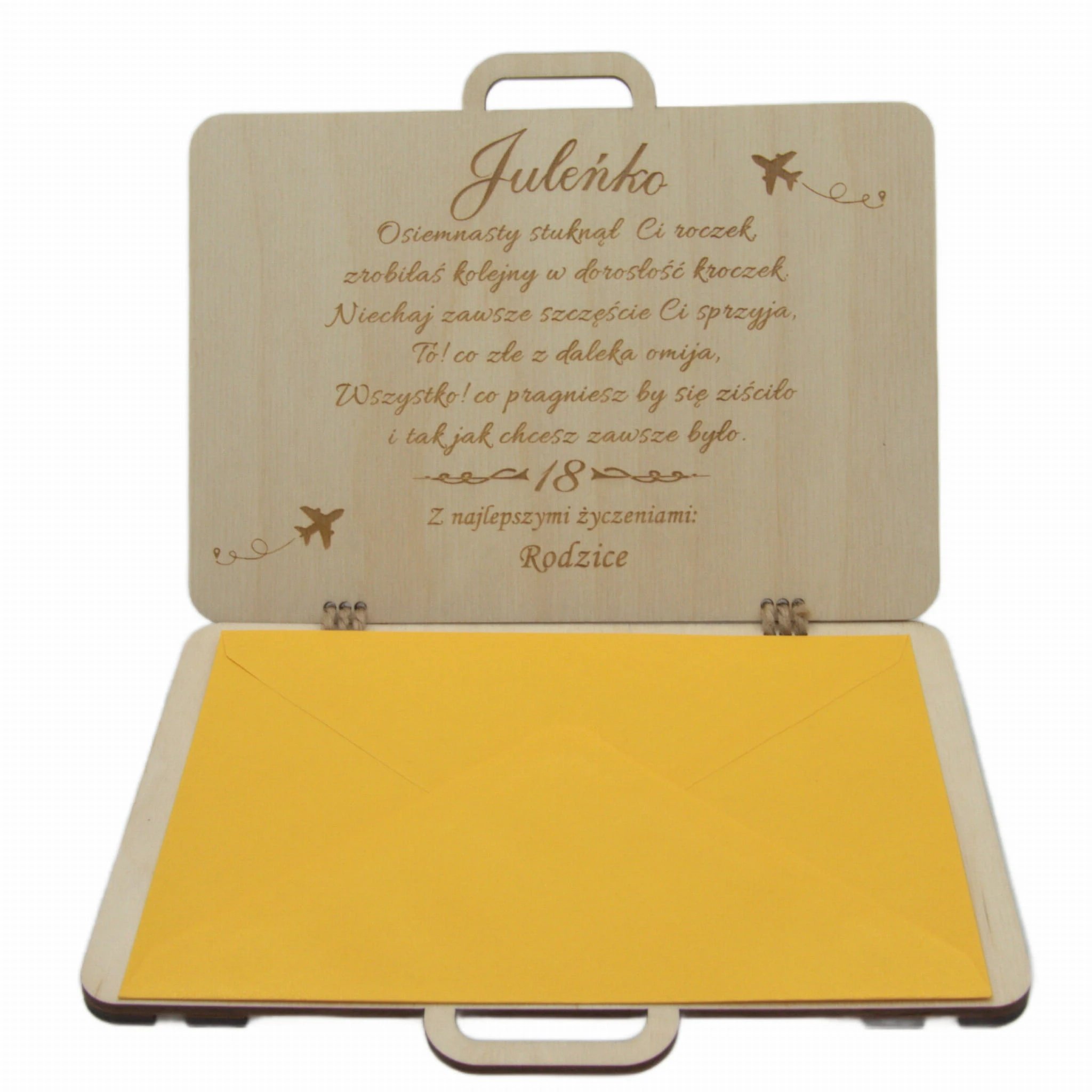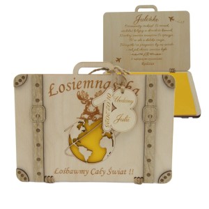 Kupujecie walizeczkę z grawerem, przywieszką oraz kopertą w zestawie.
