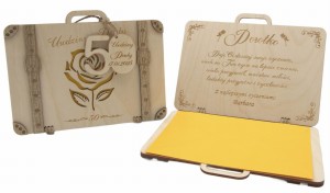 Kupujecie walizeczkę z grawerem, przywieszką oraz kopertą w zestawie.