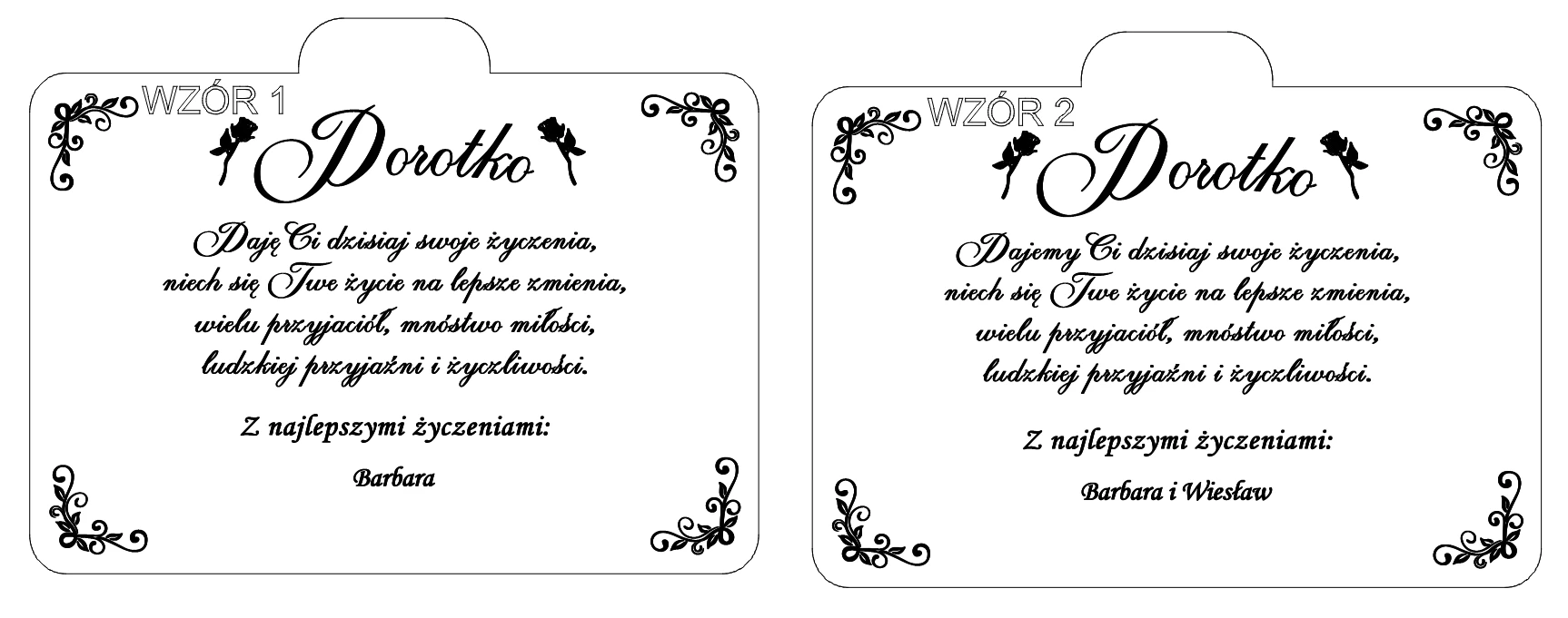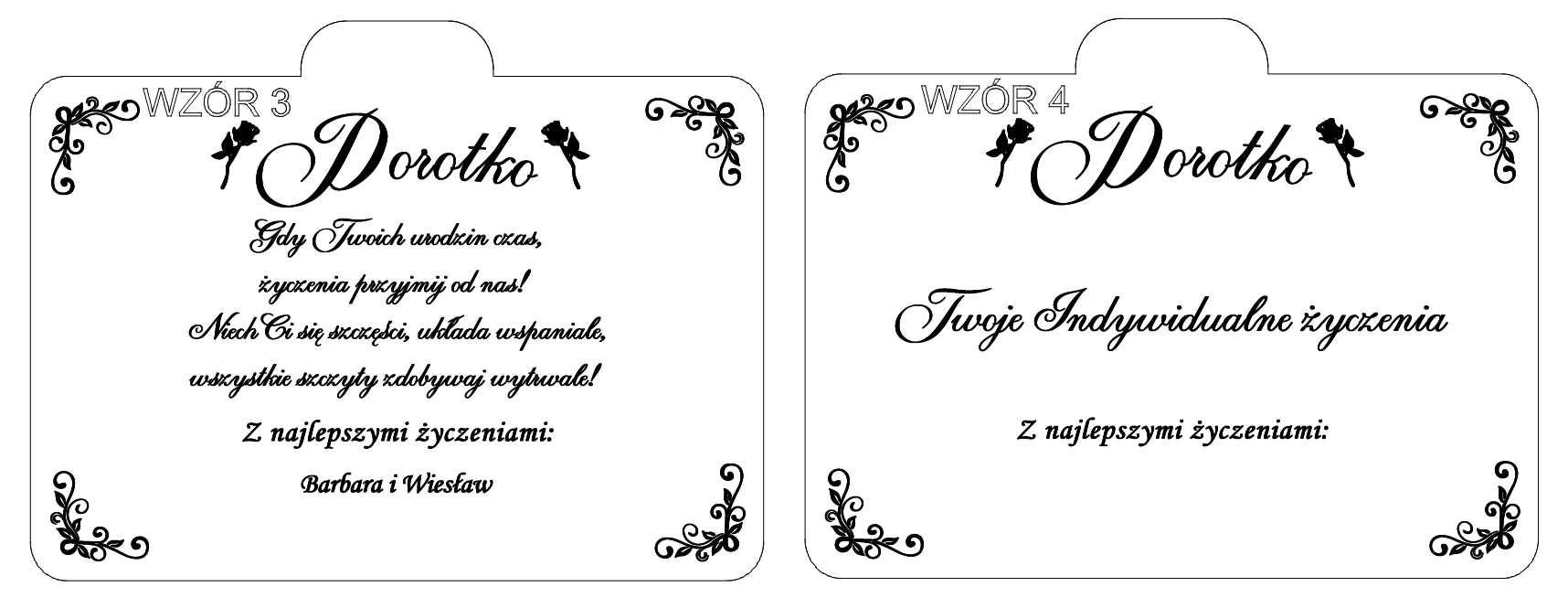 - Odmienione Imię Solenizantki do środka koperty; Przykład: Dorotko