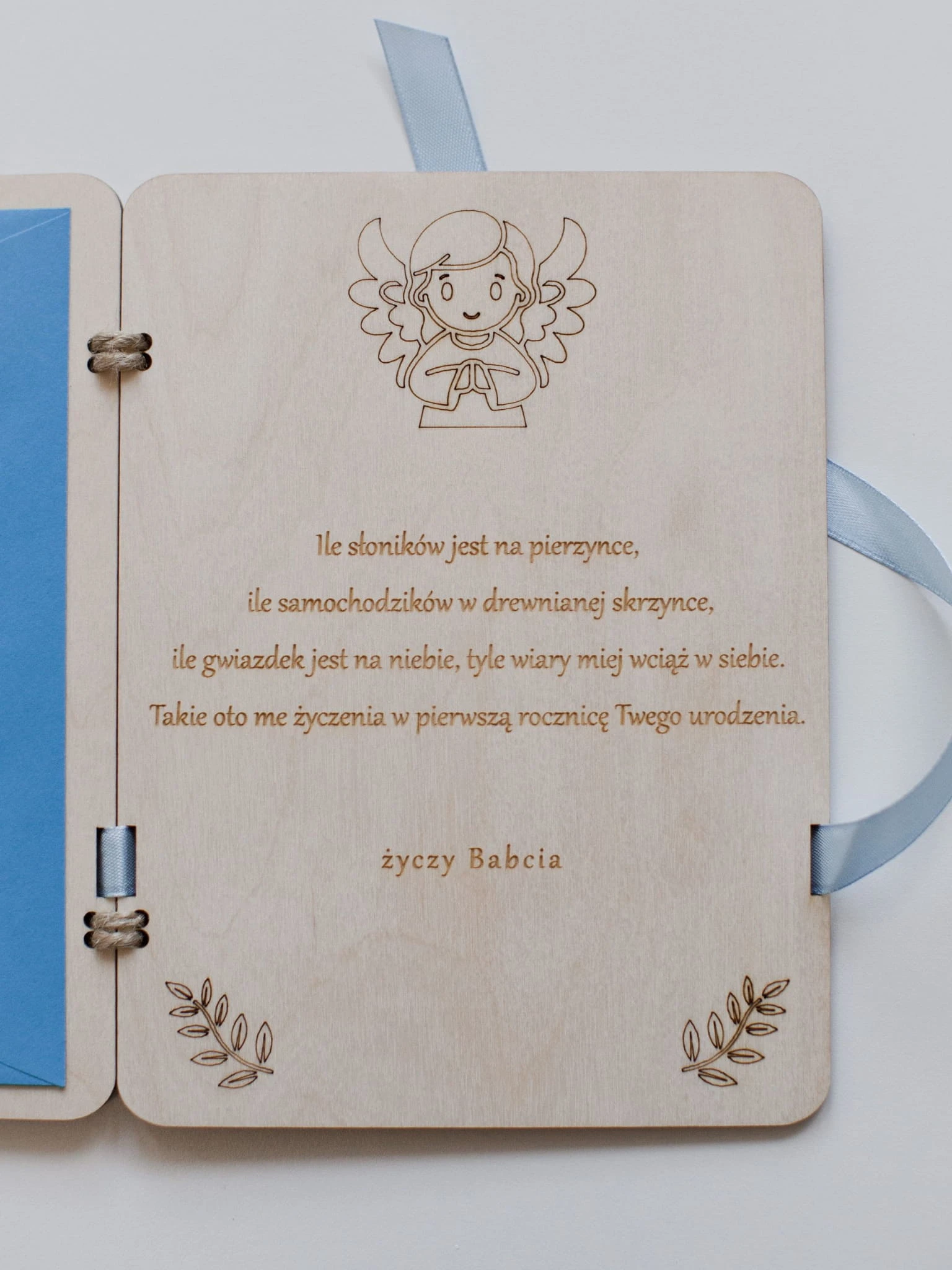 Kupujecie Kartkę z grawerem,wstążką oraz kopertą w zestawie.