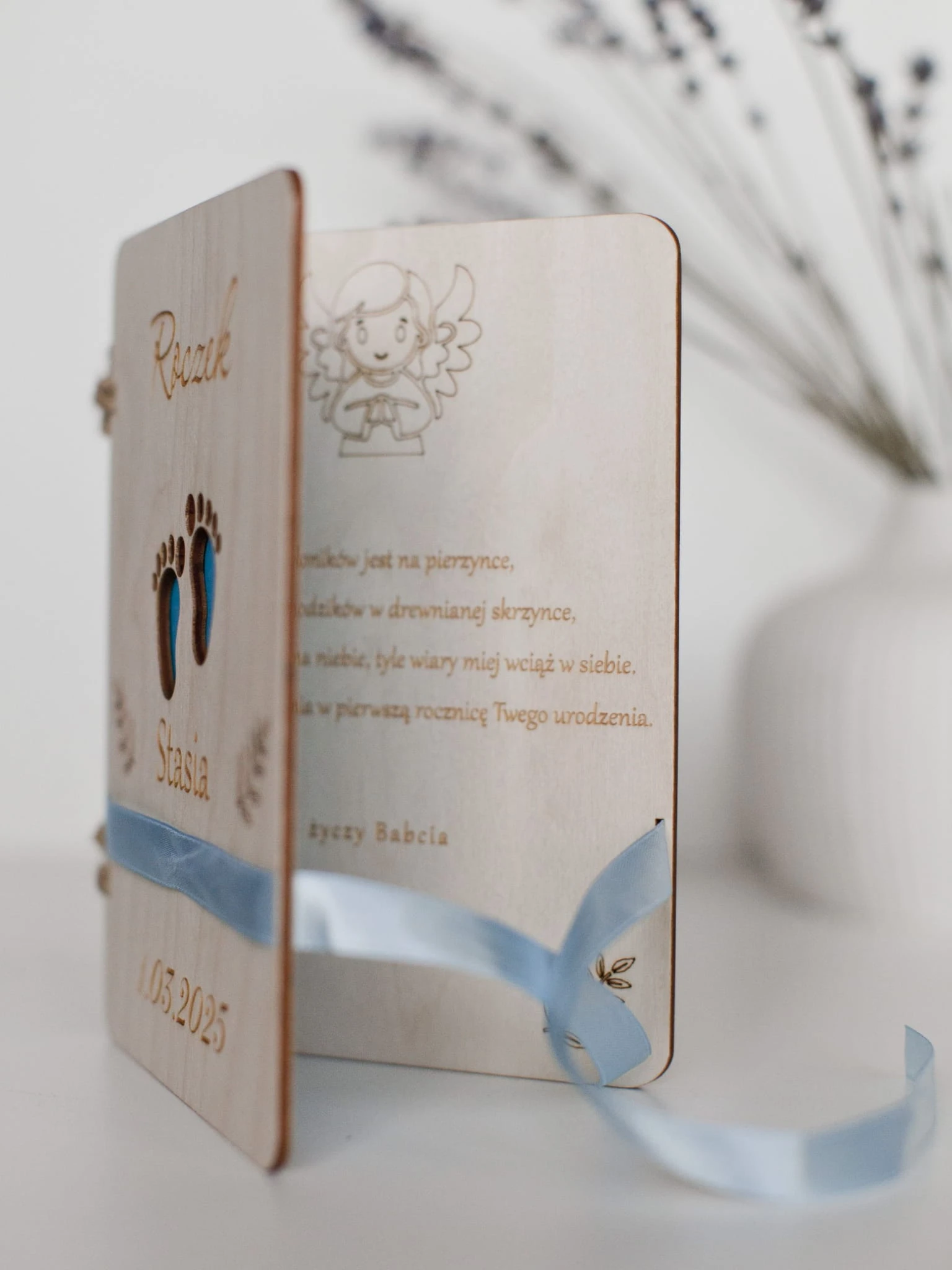 ✨Personalizowana Kartka Urodzinowa dla Dziecka – Grawerowane Imię, Stópki i Dedykacja✨