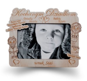Drewniana ramka ze zdjęciem swojego kochanego wnuka lub wnucząt.
