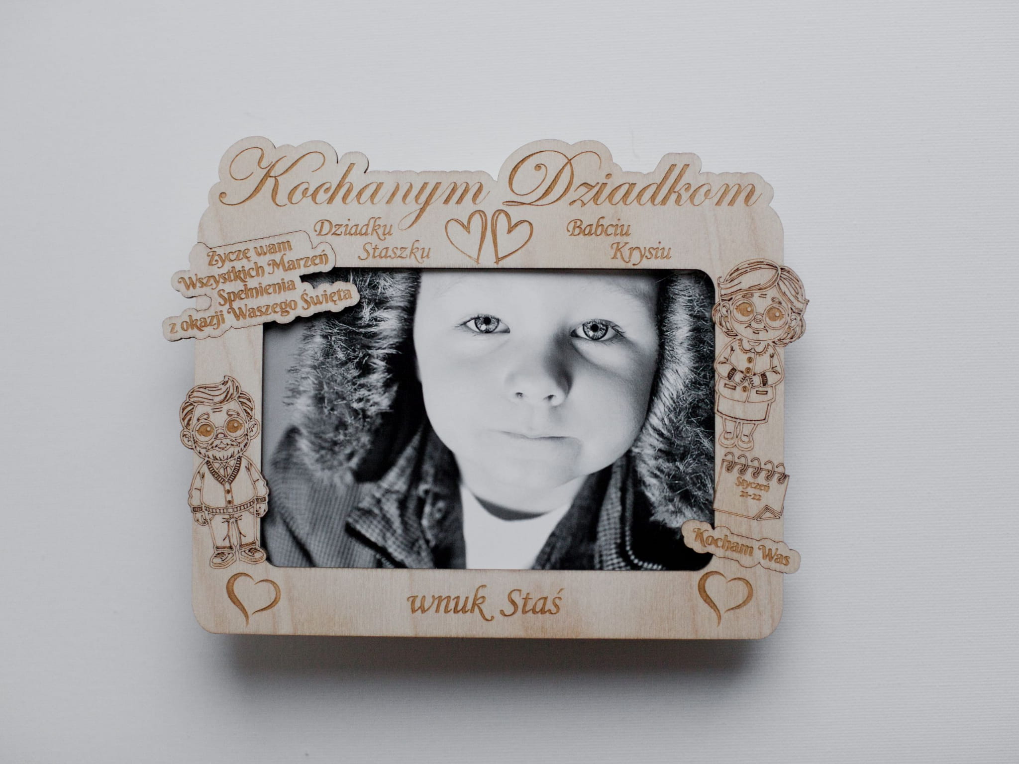 Dzień Babci i Dziadka to nie tylko data w kalendarzu – to chwila, w której możemy powiedzieć „dziękuję” za bezwarunkową miłość, ciepło, cierpliwość i wszystkie wspólne momenty. Nasza drewniana ramka to prezent, który wzrusza, zostaje na lata i codziennie przywołuje piękne wspomnienia.