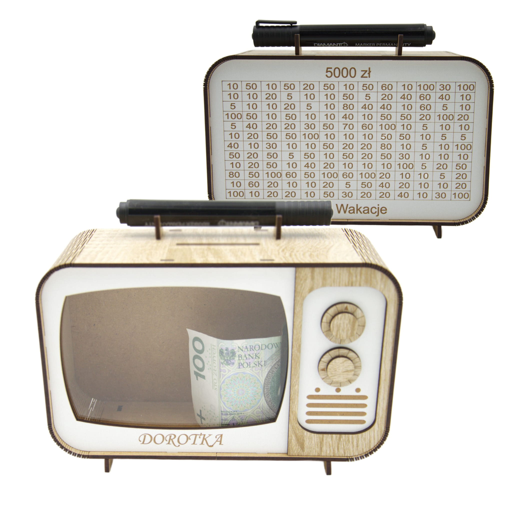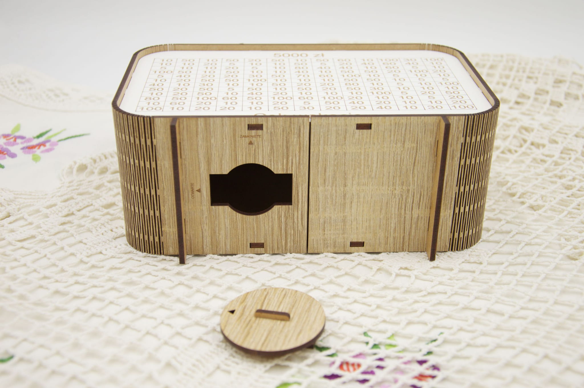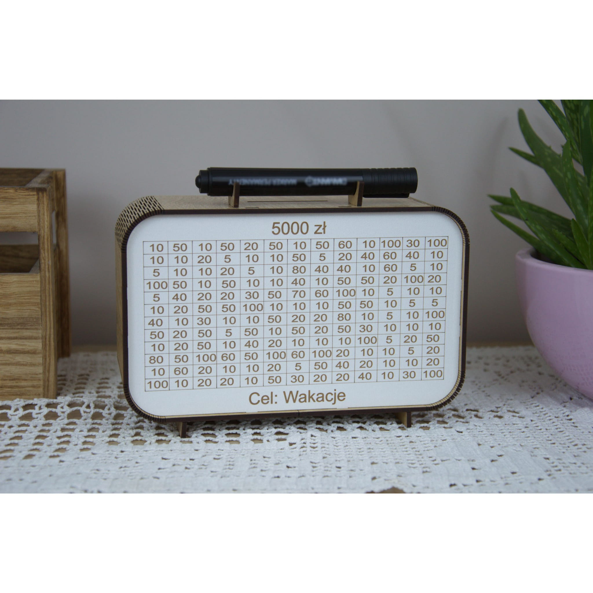 Ta drewniana skarbonka z trackerem oszczędzania to coś więcej niż zwykły pojemnik na pieniądze. Każda wpłata to mały sukces, który możesz odznaczyć wykreślając pole – widzisz postęp i motywujesz się do dalszego działania.